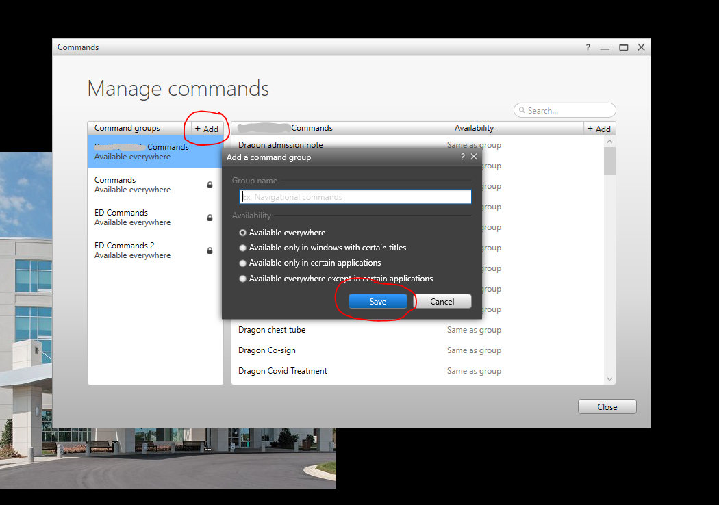 In order to create your macros, select “commands” in the drop down menu ( pic 1). Then add a new command group on the left hand side (pic 2). From there you can add new commands as needed on the right side (pic 3). This will pull up a separate window that will allow you to enter your command along with the words that will be input after you state your command. (pic 3)